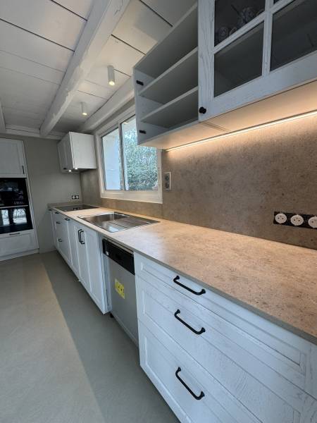 Le Dekton Salina s'inspire des motifs fantaisistes du sel que la marée basse dépose sur le sable et les rochers. Ces délicates crêtes blanches se matérialisent dans un motif asymétrique de veines grises sur une base blanche qui réinterprète l’élégance classique du marbre de Carrare.