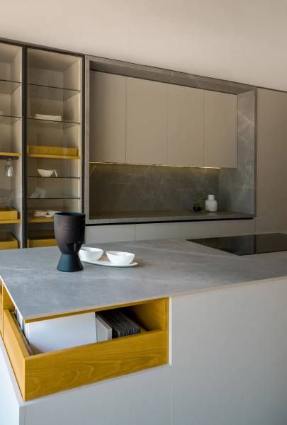 Ce marbre à grain fin et grisâtre rappelle Crotone Pulpis. Il s’agit d’un gris tendance, indémodable et offrant une grande richesse sur le plan graphique.