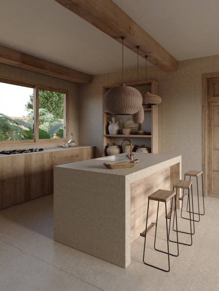 Avec une teinte beige clair et une finition extrêmement naturelle, le Dekton Avorio s’inspire de la pierre éponyme d’Avorio, un matériau italien caractérisé par la présence de coquillages fossiles. Son design le rend particulièrement adapté aux applications où la continuité du motif au niveau des champs est requise.