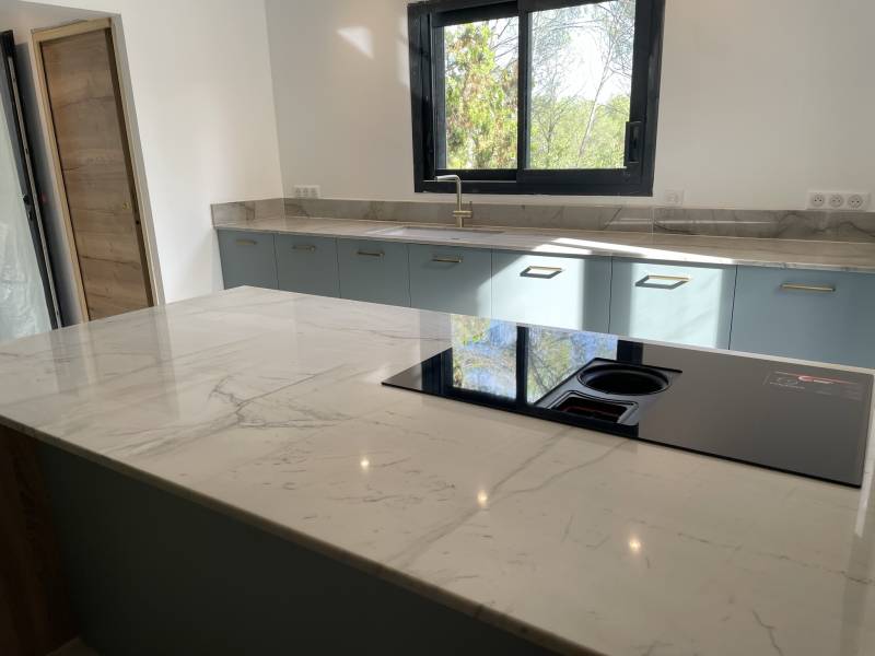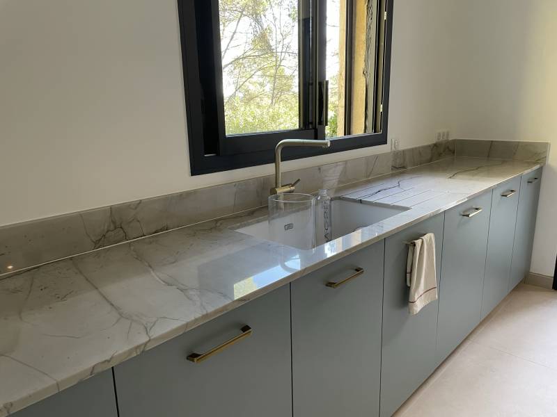 Le Granit Calacatta Bohème provient du Brésil. La résistance de cette pierre originale est idéale pour plans de travail. Ce granit possède des tons neutres et élégants. Calacatta Boheme brille sur les plans de travail de cuisine et de salle de bain, où elle se distingue par sa forte personnalité.