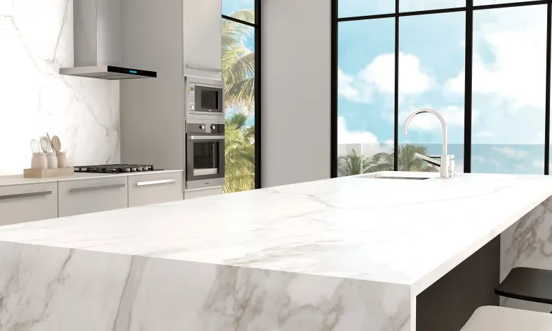 Grassi White convient donc parfaitement à tout type de projet. Son fond blanc et riche en contrastes associe de discrètes veinures grises à des notes et reflets bruns qui ajoutent de la chaleur à la finition marbrée.
