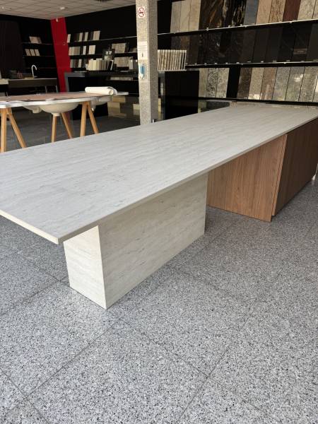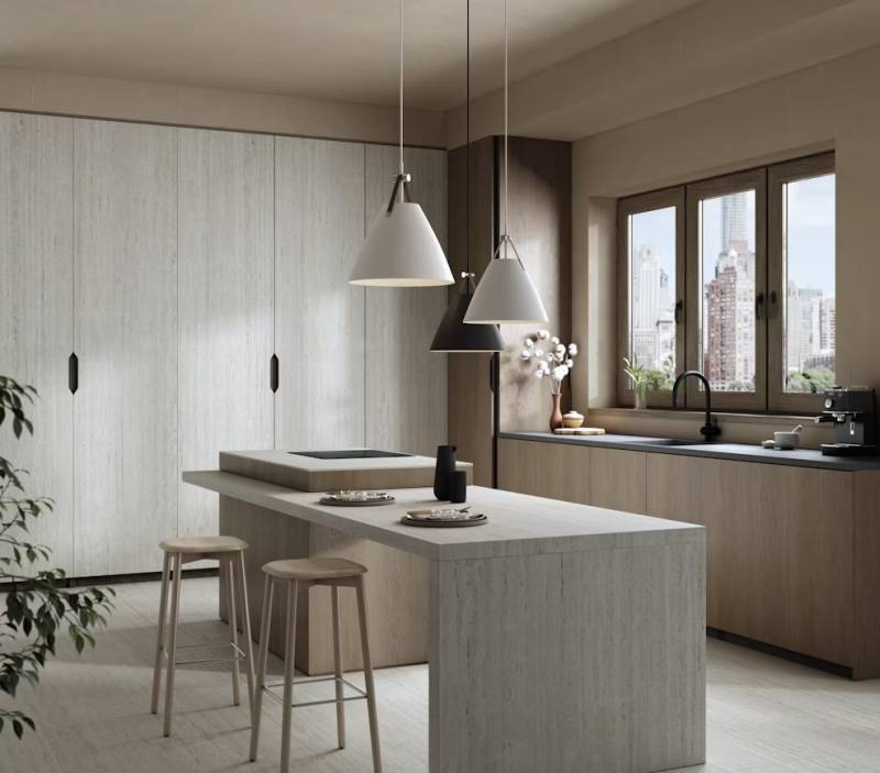 Le Dekton Marmorio c'est une structure légèrement rayée et poreuse, qui confère un esthétisme élégant, lumineux et léger à tout design, s’inspire du travertin Navona, une pierre naturelle extraite près de Tivoli, à l’est de Rome.