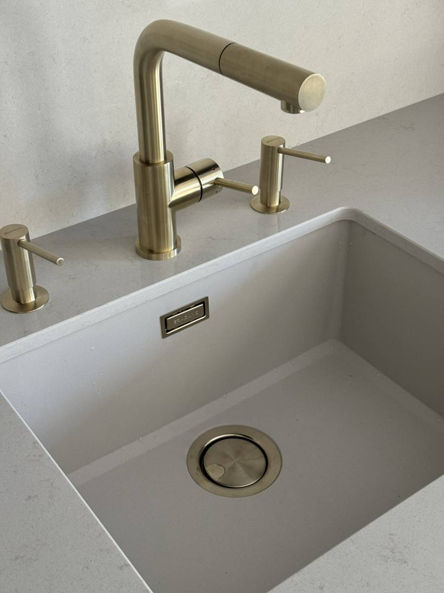 Réalisation de plans de travail sur mesure avec cuve sous plan pour un rendu épuré et pratique au quotidien.