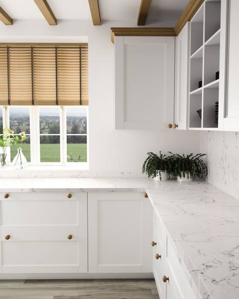 Le White Arabesque, c'est deux tons blanc et gris, parcourus de veines sombres, donnent à cette couleur un effet marbré et audacieux.