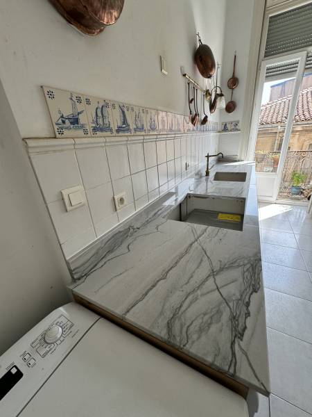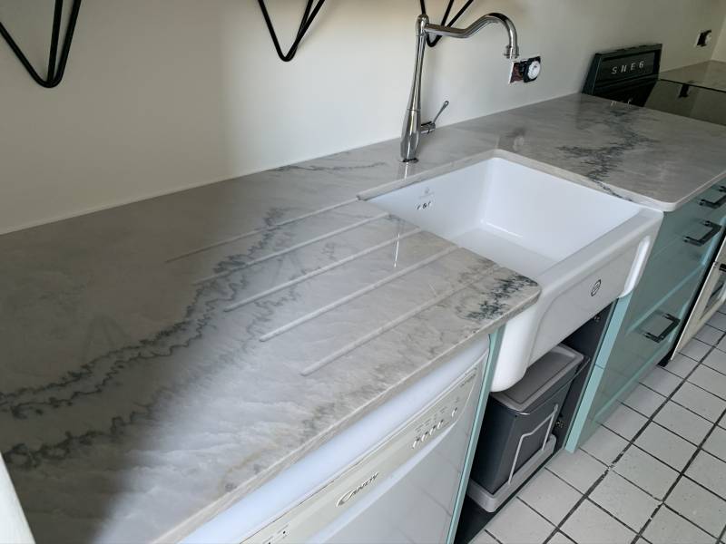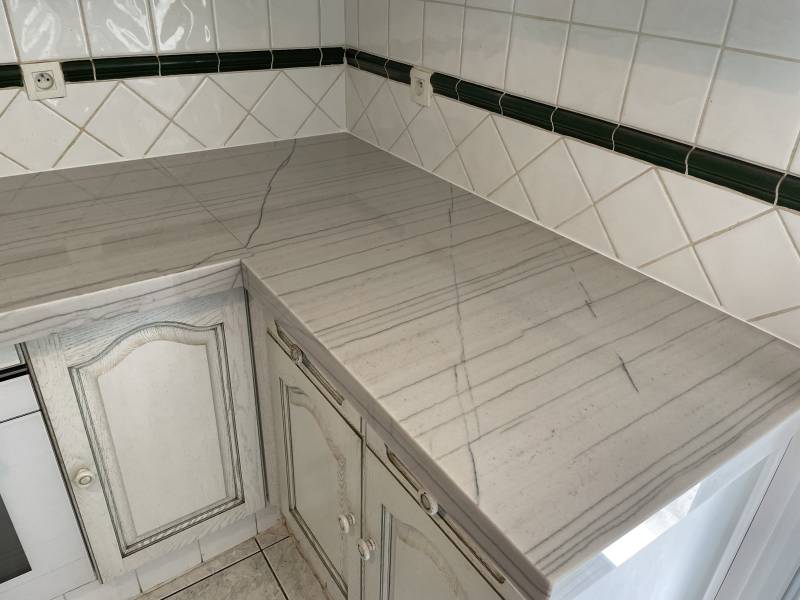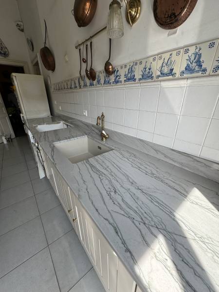 Originaire du Brésil, le granit White Macaubas se distingue par son fond blanc à beige clair, traversé de veines grises délicates qui rappellent le marbre. Son esthétique raffinée et intemporelle en fait un choix privilégié pour les projets haut de gamme, tout en offrant la solidité et la facilité d'entretien du granit.